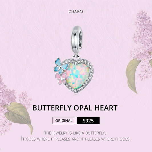 Butterfly Opal Heart Charm