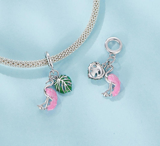 Flamingo Monstera Leaf Pendant Charm