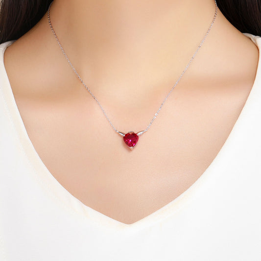 Crimson Love Wings Sterling Silver Necklace