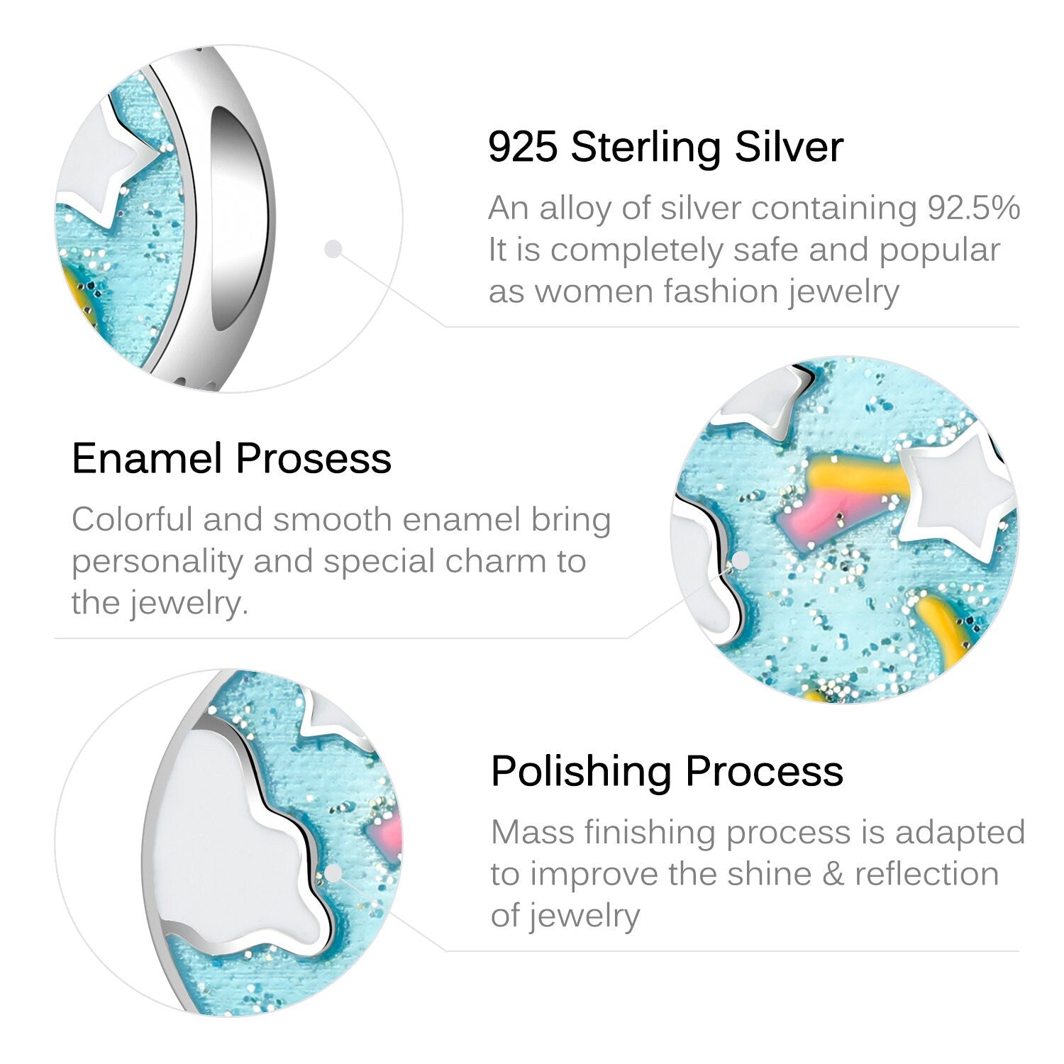 Authentic Material: Solid 925 Sterling Silver, hypoallergenic & tarnish-resistant.