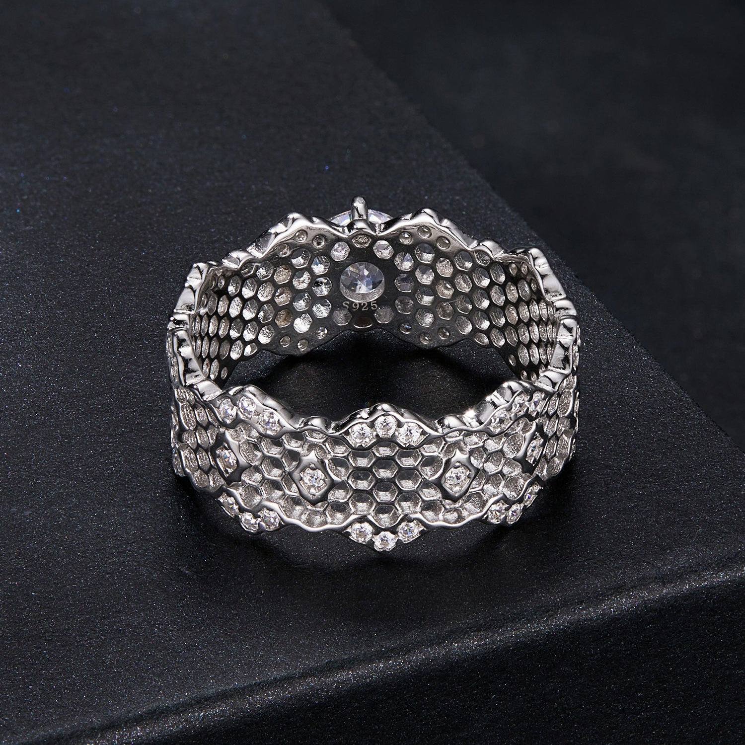 Lace-Inspired Wide Moissanite Ring